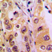 Immunohistochemical analysis of SURF1 staining in human liver cancer formalin fixed paraffin embedded tissue section. The section was pre-treated using heat mediated antigen retrieval with sodium citrate buffer (pH 6.0). The section was then incubated with the antibody at room temperature and detected using an HRP conjugated compact polymer system. DAB was used as the chromogen. The section was then counterstained with haematoxylin and mounted with DPX. -