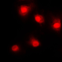 Immunofluorescent analysis of p53 staining in HeLa cells. Formalin-fixed cells were permeabilized with 0.1% Triton X-100 in TBS for 5-10 minutes and blocked with 3% BSA-PBS for 30 minutes at room temperature. Cells were probed with the primary antibody in 3% BSA-PBS and incubated overnight at 4 °C in a humidified chamber. Cells were washed with PBST and incubated with a DyLight 594-conjugated secondary antibody (red) in PBS at room temperature in the dark.