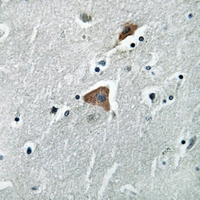 Immunohistochemical analysis of mTERF staining in human brain formalin fixed paraffin embedded tissue section. The section was pre-treated using heat mediated antigen retrieval with sodium citrate buffer (pH 6.0). The section was then incubated with the antibody at room temperature and detected using an HRP conjugated compact polymer system. DAB was used as the chromogen. The section was then counterstained with haematoxylin and mounted with DPX. -