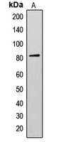 Western blot analysis of AKAP17A expression in Jurkat (A) whole cell lysates. (Predicted band size: 80 kD; Observed band size: 81 kD) -