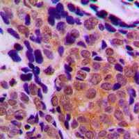 产品描述:Rabbit polyclonal antibody to p63免疫原:KLH-conjugated synthetic peptide encompassing a sequence within the C-term region of human p63. The exact sequence is proprietary.纯化方式:The antibody was purified by immunogen affinity chromatography.克隆类型:Polyclonal产品形式:Liquid in 0.42% Potassium phosphate, 0.87% Sodium chloride, pH 7.3, 30% glycerol, and 0.01% sodium azide.稀释比:WB (1/500 - 1/1000), IH (1/100 - 1/200), IF/IC (1/100 - 1/500)基因名称:TP63相关名称:KET; P63; P73H; P73L; TP73L; Tumor protein 63; p63; Chronic ulcerative stomatitis protein; CUSP; Keratinocyte transcription factor KET; Transformation-related protein 63; TP63; Tumor protein p73-like; p73L; p40; p51