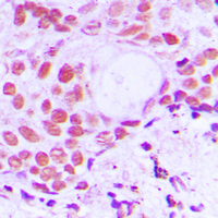 Immunohistochemical analysis of TIF1 alpha staining in human breast cancer formalin fixed paraffin embedded tissue section. The section was pre-treated using heat mediated antigen retrieval with sodium citrate buffer (pH 6.0). The section was then incubated with the antibody at room temperature and detected using an HRP conjugated compact polymer system. DAB was used as the chromogen. The section was then counterstained with haematoxylin and mounted with DPX.