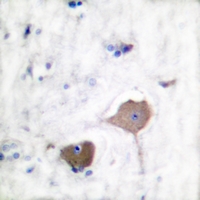 Immunohistochemical analysis of Nop30 staining in human brain formalin fixed paraffin embedded tissue section. The section was pre-treated using heat mediated antigen retrieval with sodium citrate buffer (pH 6.0). The section was then incubated with the antibody at room temperature and detected using an HRP conjugated compact polymer system. DAB was used as the chromogen. The section was then counterstained with haematoxylin and mounted with DPX. -