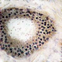 产品描述:Rabbit polyclonal antibody to LRAT免疫原:KLH-conjugated synthetic peptide encompassing a sequence within the center region of human LRAT. The exact sequence is proprietary.纯化方式:The antibody was purified by immunogen affinity chromatography.克隆类型:Polyclonal产品形式:Liquid in 0.42% Potassium phosphate, 0.87% Sodium chloride, pH 7.3, 30% glycerol, and 0.01% sodium azide.稀释比:WB (1/500 - 1/1000), IH (1/50 - 1/100), IF/IC (1/50 - 1/200)基因名称:LRAT相关名称:Lecithin retinol acyltransferase; Phosphatidylcholine--retinol O-acyltransferase