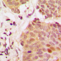 Immunohistochemical analysis of G3BP1 staining in human breast cancer formalin fixed paraffin embedded tissue section. The section was pre-treated using heat mediated antigen retrieval with sodium citrate buffer (pH 6.0). The section was then incubated with the antibody at room temperature and detected using an HRP conjugated compact polymer system. DAB was used as the chromogen. The section was then counterstained with haematoxylin and mounted with DPX. -