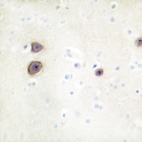 Immunohistochemical analysis of Renin Receptor staining in human brain formalin fixed paraffin embedded tissue section. The section was pre-treated using heat mediated antigen retrieval with sodium citrate buffer (pH 6.0). The section was then incubated with the antibody at room temperature and detected using an HRP conjugated compact polymer system. DAB was used as the chromogen. The section was then counterstained with haematoxylin and mounted with DPX. -