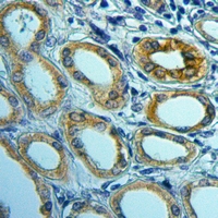 产品描述:Rabbit polyclonal antibody to PGRMC2免疫原:KLH-conjugated synthetic peptide encompassing a sequence within the C-term region of human PGRMC2. The exact sequence is proprietary.纯化方式:The antibody was purified by immunogen affinity chromatography.克隆类型:Polyclonal产品形式:Liquid in 0.42% Potassium phosphate, 0.87% Sodium chloride, pH 7.3, 30% glycerol, and 0.01% sodium azide.稀释比:WB (1/500 - 1/1000), IH (1/50 - 1/100)基因名称:PGRMC2相关名称:DG6; PMBP; Membrane-associated progesterone receptor component 2; Progesterone membrane-binding protein; Steroid receptor protein DG6