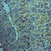 Immunohistochemical analysis of FAIM2 staining in human liver cancer formalin fixed paraffin embedded tissue section. The section was pre-treated using heat mediated antigen retrieval with sodium citrate buffer (pH 6.0). The section was then incubated with the antibody at room temperature and detected using an HRP conjugated compact polymer system. DAB was used as the chromogen. The section was then counterstained with haematoxylin and mounted with DPX.