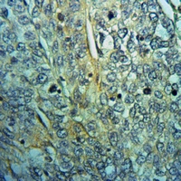 Immunohistochemical analysis of Raftlin staining in human liver cancer formalin fixed paraffin embedded tissue section. The section was pre-treated using heat mediated antigen retrieval with sodium citrate buffer (pH 6.0). The section was then incubated with the antibody at room temperature and detected using an HRP conjugated compact polymer system. DAB was used as the chromogen. The section was then counterstained with haematoxylin and mounted with DPX.