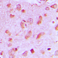 Immunohistochemical analysis of JIP2 staining in human brain formalin fixed paraffin embedded tissue section. The section was pre-treated using heat mediated antigen retrieval with sodium citrate buffer (pH 6.0). The section was then incubated with the antibody at room temperature and detected using an HRP conjugated compact polymer system. DAB was used as the chromogen. The section was then counterstained with haematoxylin and mounted with DPX. -