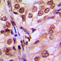 Immunohistochemical analysis of 4EBP1 staining in human breast cancer formalin fixed paraffin embedded tissue section. The section was pre-treated using heat mediated antigen retrieval with sodium citrate buffer (pH 6.0). The section was then incubated with the antibody at room temperature and detected using an HRP conjugated compact polymer system. DAB was used as the chromogen. The section was then counterstained with haematoxylin and mounted with DPX.