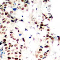 Immunohistochemical analysis of RPA2 (Phospho-T21) staining in human breast cancer formalin fixed paraffin embedded tissue section. The section was pre-treated using heat mediated antigen retrieval with sodium citrate buffer (pH 6.0). The section was then incubated with the antibody at room temperature and detected using an HRP conjugated compact polymer system. DAB was used as the chromogen. The section was then counterstained with haematoxylin and mounted with DPX. -