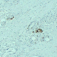 Immunohistochemical analysis of IGF2 staining in human pancreatic carcinoma formalin fixed paraffin embedded tissue section. The section was pre-treated using heat mediated antigen retrieval with sodium citrate buffer (pH 6.0). The section was then incubated with the antibody at room temperature and detected using an HRP conjugated compact polymer system. DAB was used as the chromogen. The section was then counterstained with haematoxylin and mounted with DPX.