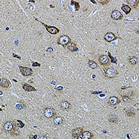 Immunohistochemical analysis of UQCRC1 staining in human brain formalin fixed paraffin embedded tissue section. The section was pre-treated using heat mediated antigen retrieval with sodium citrate buffer (pH 6.0). The section was then incubated with the antibody at room temperature and detected using an HRP conjugated compact polymer system. DAB was used as the chromogen. The section was then counterstained with haematoxylin and mounted with DPX.