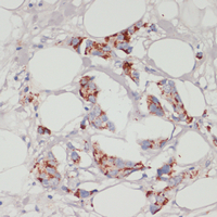 Immunohistochemical analysis of ACSL3 staining in human breast cancer formalin fixed paraffin embedded tissue section. The section was pre-treated using heat mediated antigen retrieval with sodium citrate buffer (pH 6.0). The section was then incubated with the antibody at room temperature and detected using an HRP conjugated compact polymer system. DAB was used as the chromogen. The section was then counterstained with haematoxylin and mounted with DPX.