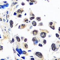 Immunohistochemical analysis of TIP120A staining in human lung cancer formalin fixed paraffin embedded tissue section. The section was pre-treated using heat mediated antigen retrieval with sodium citrate buffer (pH 6.0). The section was then incubated with the antibody at room temperature and detected using an HRP conjugated compact polymer system. DAB was used as the chromogen. The section was then counterstained with haematoxylin and mounted with DPX.