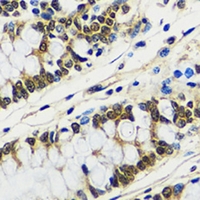 Immunohistochemical analysis of CCDC59 staining in human colon formalin fixed paraffin embedded tissue section. The section was pre-treated using heat mediated antigen retrieval with sodium citrate buffer (pH 6.0). The section was then incubated with the antibody at room temperature and detected using an HRP conjugated compact polymer system. DAB was used as the chromogen. The section was then counterstained with haematoxylin and mounted with DPX. -