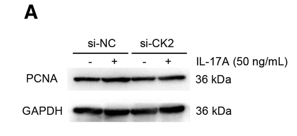 Western blot analysis of PCNA expression in H9C2 (A), 3T3L1 (B), HEK293T (C), A549 (D), HCT116 (E) whole cell lysates. (Predicted band size: 28 kD; Observed band size: 36 kD) -